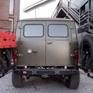 - Сзади две запаски и два домкрата (в багажнике ещё 2 запаски)