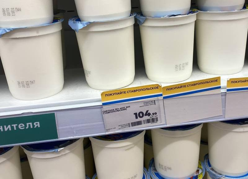 — Пребываю немного в шоке. «Цена производителя», «Покупай ставропольское», а цена самая высокая в магазине, хотя это минимальная жирность сметаны, недавно за 82₽ брала, а уже 105₽, — писала горожанка в редакцию.