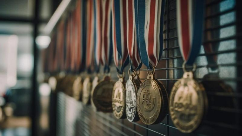 Награды должны находится в рамке и расположены на флоке красного цвета.