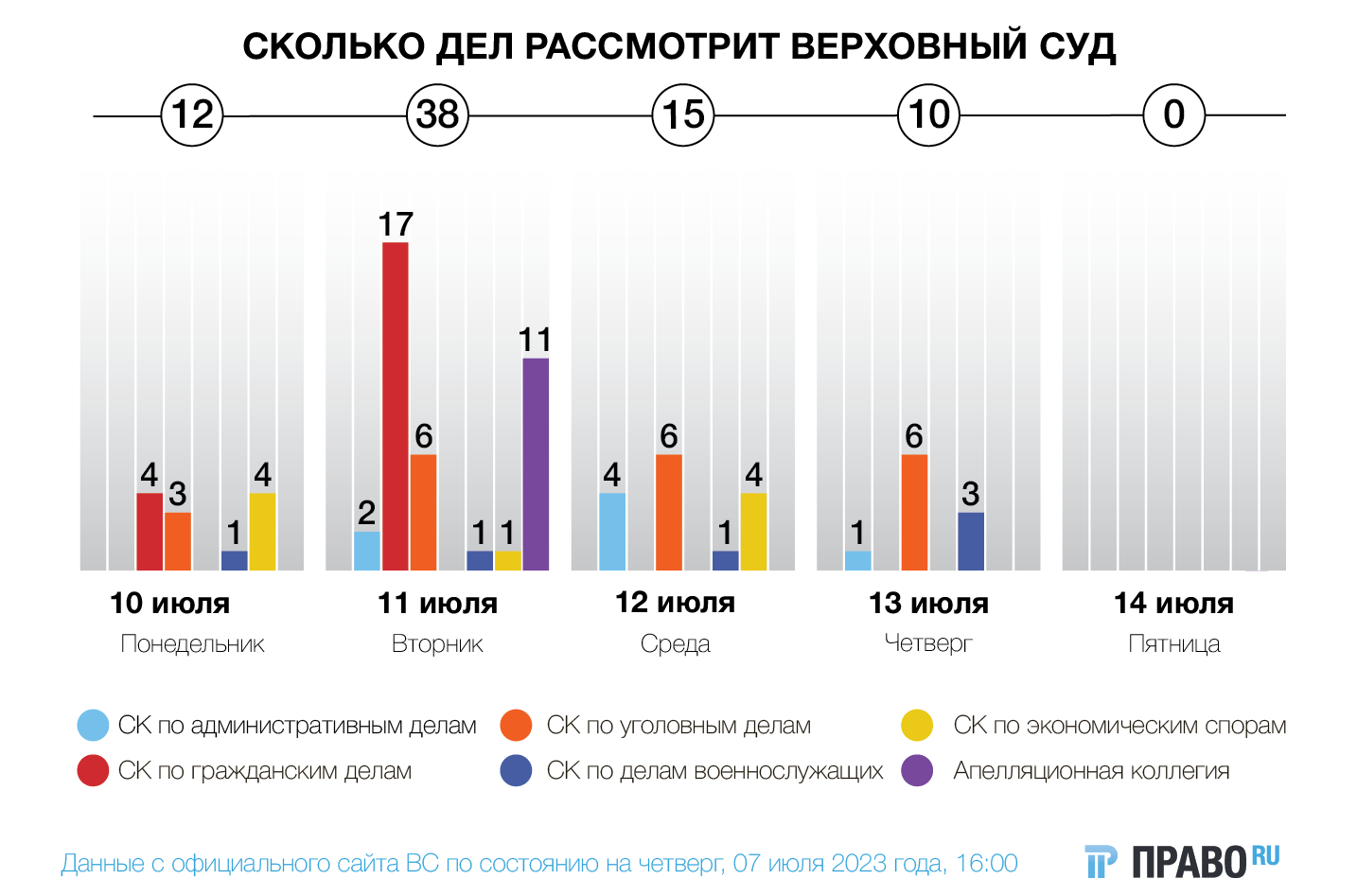 75 дел рассмотрит Верховный суд на неделе с 10 по 14 июля. Экономколлегия разберется в двух похожих спорах,