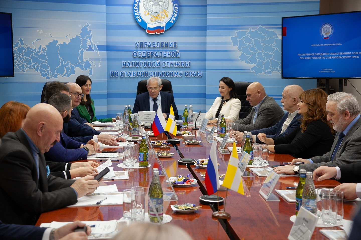 В УФНС России по Ставропольскому краю прошло заседание Общественного совета, в ходе которого озвучены итоги работы ведомства, рассмотрены вопросы реализации отраслевого проекта «Общественное питание», приведены результаты по внедрению Единого налогового счета (ЕНС) и кампании по уплате имущественных налогов. Модератором мероприятия выступил заместитель председателя Общественного совета, директор Института экономики и управления СКФУ Лев Ушвицкий .