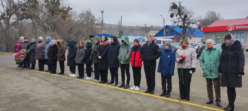 На площади около памятника «Слава воинам, в битве за Родину павшим» собрались представители казачества, актив совета ветеранов, старшеклассники общеобразовательной школы №11, работники культуры и местные жители.