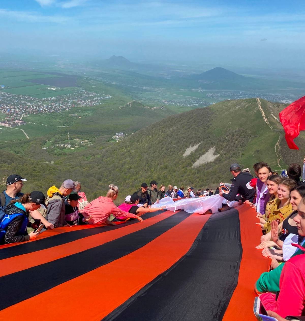 На горе Бештау развернули гигантскую георгиевскую ленточку