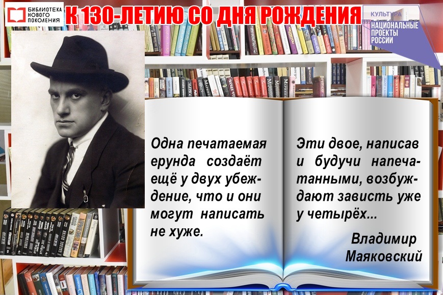 Приглашаем на книжные выставки, открывшиеся к 130-летию со дня рождения Владимира Маяковского в общем читальном зале и на юношеском абонементе ЦГБ им. М. Горького