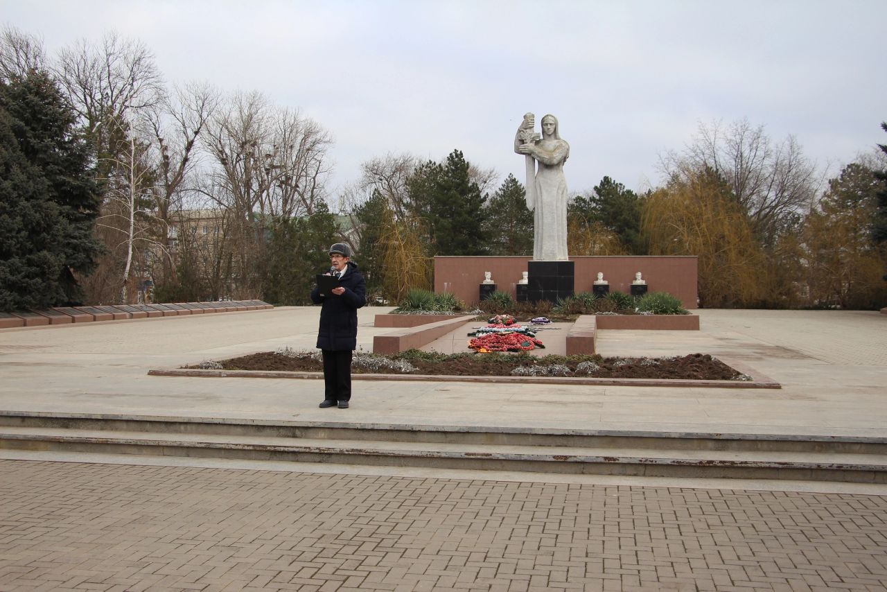 Председатель Совета ветеранов В. В. Козлов зачитал отрывки из официальных документов, рассказывающих о злодеяниях немецко-фашистских захватчиков в период оккупации Ипатовского района.