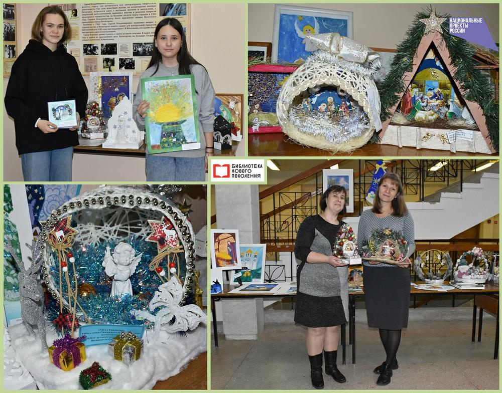 На выставке, организованной Пятигорской и Черкесской епархией и ЦГБ им. М. Горького, представлено огромное количество поделок, выполненных юными пятигорчанами совместно с родителями, дедушками и бабушками, воспитателями и преподавателями. В эти волшебные дни накануне Нового года и Рождества эти работы не только стали украшением нашей модельной библиотеки, но и щедро дарят всем читателям, приходящим за книгами, праздничное настроение.