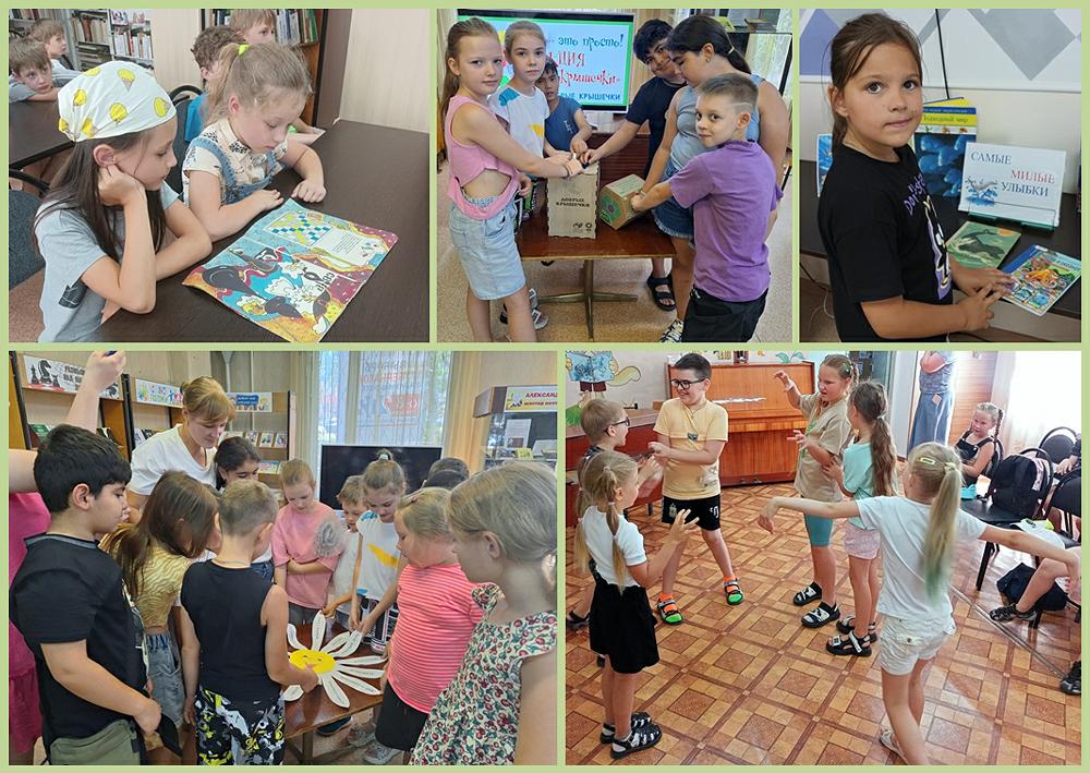 В другой день для ребят из этого лагеря библиотекари провели экологическую викторину «Полна загадок чудесница природа» и привлекли к участию в экологической акции «Добрые крышечки», «Сдай батарейку – спаси ёжика». Гости отгадывали «Лесные загадки», отвечали на «Хитрые вопросы», играли в «Ботаническое лото», собирали «Овощную грядку», ловили разные виды рыб и изображали повадки животных.
