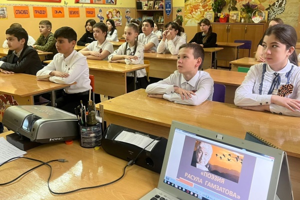 28 апреля библиотека-филиал п. Анджиевский (ул.Набережная) провела для учеников 5 «В» класса МБОУ СОШ № 4 час поэзии «Летит, летит по небу клин усталый» , посвящённый 100-летнему юбилею Расула Гамзатова.