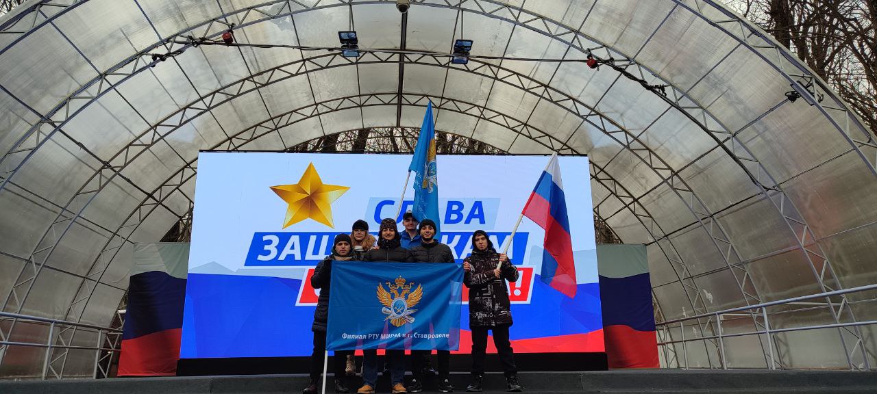 22 февраля 2023 года студенты филиала РТУ МИРЭА в г. Ставрополе стали участниками патриотического Митинг-концерта под лозунгом «Слава защитникам Отечества», главной темой которого является проводимая спецоперация.