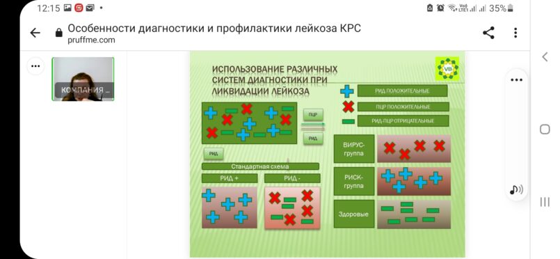 Помимо озвученных вопросов, спикер уделила особое время вопросам диагностики вируса лейкоза крупного рогатого скота методами РИД, ИФА и ПЦР. Осветила их преимущества и недостатки, возможности и особенности использования на разных стадиях патологического процесса.