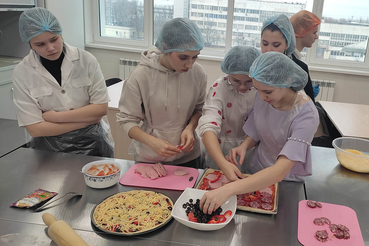 После экскурсии школьников распределили по научным лабораториям, где преподаватели и студенты факультета провели занимательный мастер-класс по приготовлению пиццы и пасты. Ребята с интересом принимали участие в готовке, выполняли поставленные задачи и в итоге справились на «отлично». Самым активным достались памятные подарки от факультета.