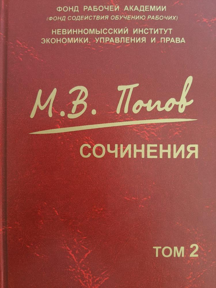 В Невинномысском институте экономики, управления и права согласно решения Ученого Совета совместно с Фондом Рабочей Академии издается Собрание сочинений доктора философских наук, профессора, действительного члена Петровской Академии наук и искусств Михаила Васильевича Попова.