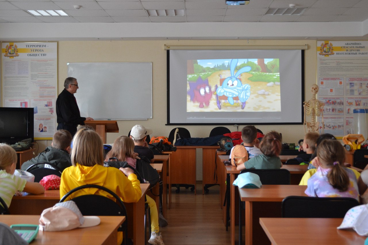 Так, у школьников начались занятия на курсах гражданской обороны. Первыми гостями стали воспитанники летнего лагеря школы № 18. В игровой форме ребятам напомнили, как вести себя в городе и в быту. Детям показали обучающие мультфильмы с правилами поведения при различных чрезвычайных ситуациях. Подробно остановились на противопожарной безопасности, правилах поведения на воде, дороге. Также мальчики и девочки познакомились со средствами индивидуальной защиты и узнали правила оказания первой помощи при несчастных случаях.