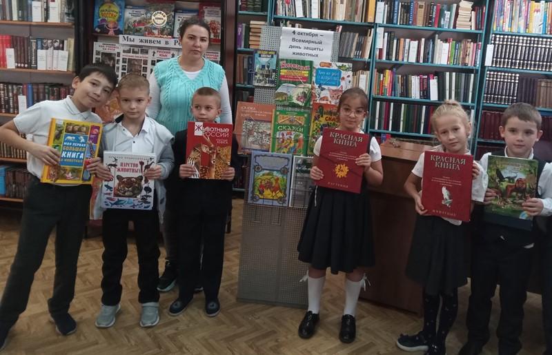 Ежемесячный урок школы экологии в библиотеке № 6 для учащихся младших классов МБОУ СОШ № 13 был в этот раз не только познавательным, но и увлекательным. Ребята узнали о том, что 4 октября во всём мире проходят мероприятия, посвященные Всемирному дню защиты животных. В России День защиты животных отмечается с 2000 года. Этот праздник призван обратить внимание людей на проблемы в окружающей среде, связанные, в том числе и с деятельностью человека. Ребята сами назвали много фактов «нехорошего» обращения человека с природой, животными и растениями, рассказывали, как можно пользоваться дарами природы, не нанося ей при этом вреда. Очень понравилась нашим гостям занимательная эковикторина «Звери и птицы – герои сказок», подготовленная библиотекарями.