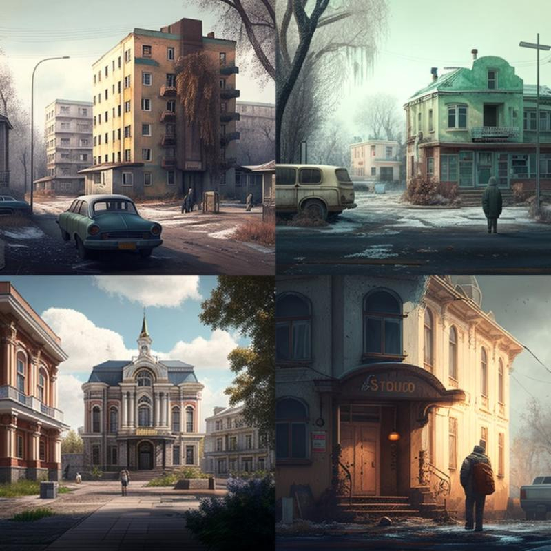 Краевой центр в представлении нейросети похож на декорации к фильмам Балабанова. Старенькие высотки, одиноко идущие люди, обшарпанные стены зданий.