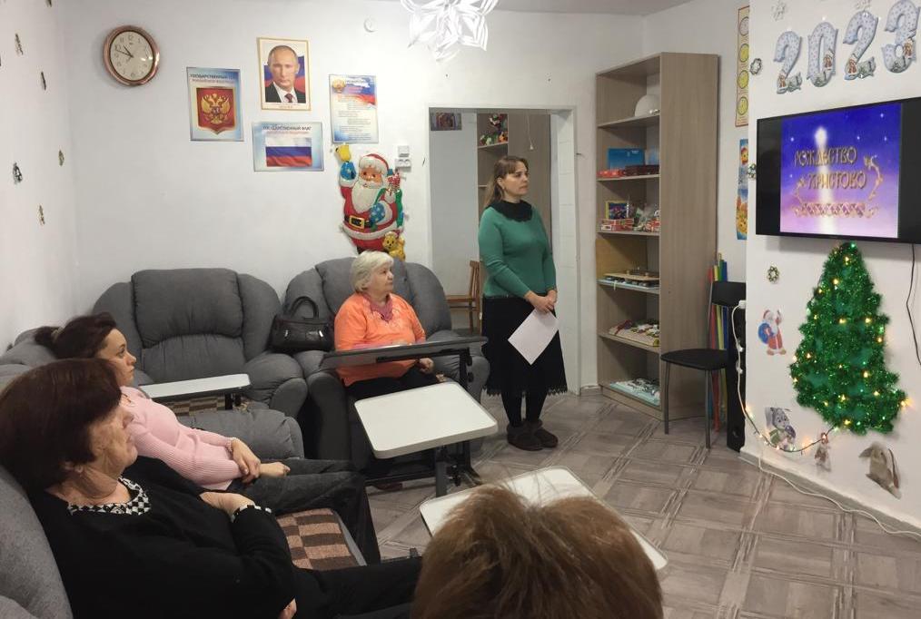19 января 2023 года в отделении дневного пребывания граждан пожилого возраста и инвалидов ГБУСО «Благодарненский ЦСОН», подведомственном Министерству труда и социальной защиты населения Ставропольского края прошла встреча с работником районной библиотеки на тему Рождественских святок «В ожидании чуда» .