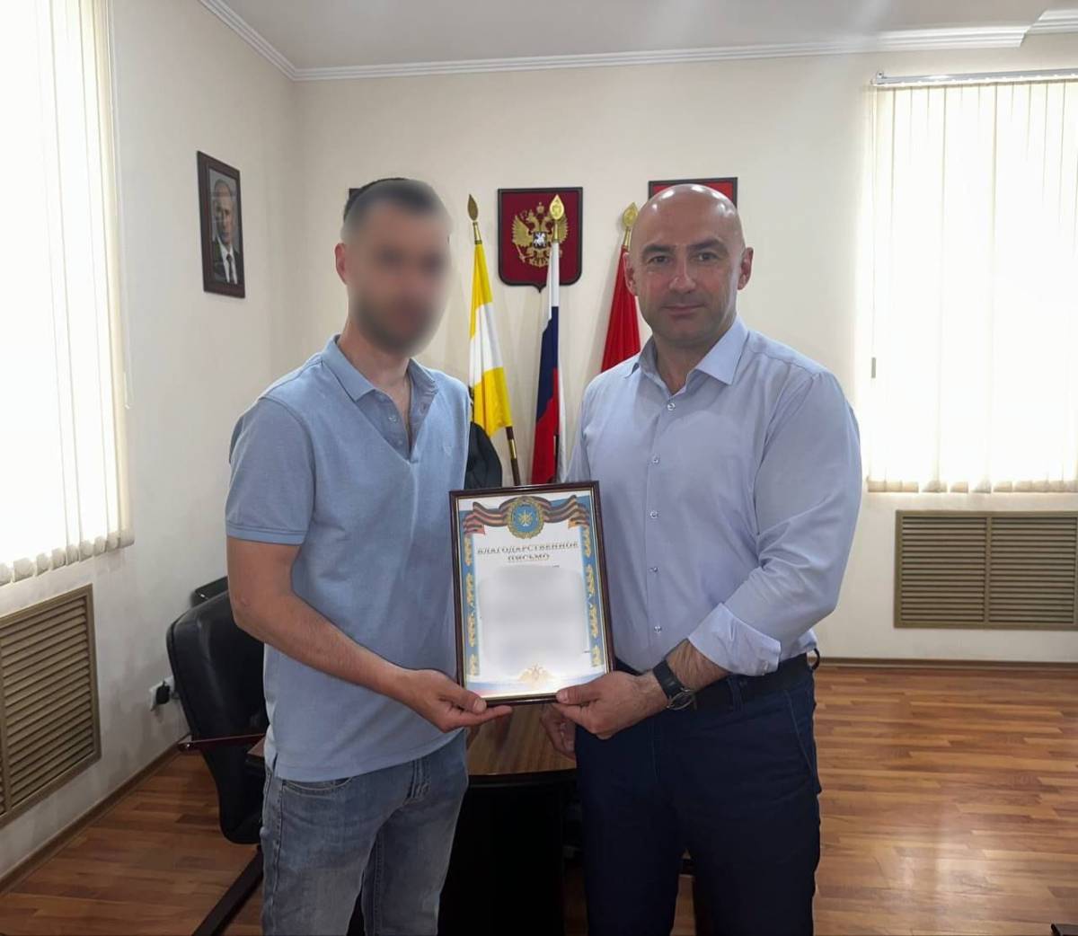 В ходе общения обсудили положение дел на передовой, условия быта и обеспечение военных подразделений. Боец передал благодарственное письмо: командование дивизии, в которой он служит, благодарит жителей округа за поддержку и помощь военнослужащим.