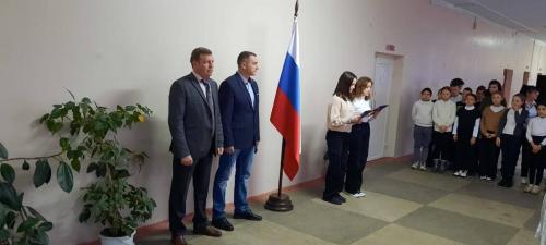 Сегодня депутат Думы Виталий Пономарев посетил школу №2. После торжественной церемонии поднятия государственного флага и исполнения гимна России для учащихся провели классный час «Разговоры о важном».