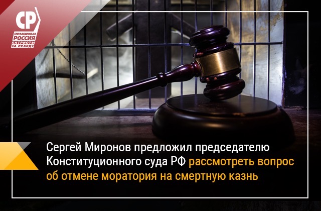 👆Председатель СРЗП Сергей Миронов направил обращение к председателю Конституционного суда РФ Валерию Зорькину с просьбой пересмотреть позицию КС РФ "в отношении возможности назначения и приведения в исполнение наказания в виде смертной казни судами".