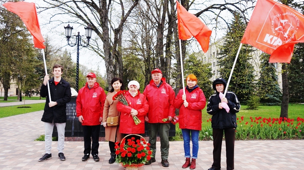 22 апреля в Ставрополе коммунисты и комсомольцы провели церемонию возложения цветов к подножью памятника Владимиру Ильичу Ленину в центре города.