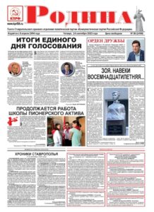Свежий номер газеты «Родина» от 14 сентября открывает статья Вадима Фусточенко « Итоги Единого дня голосования». КПРФ подтвердила статус главной оппозиционной силы страны…