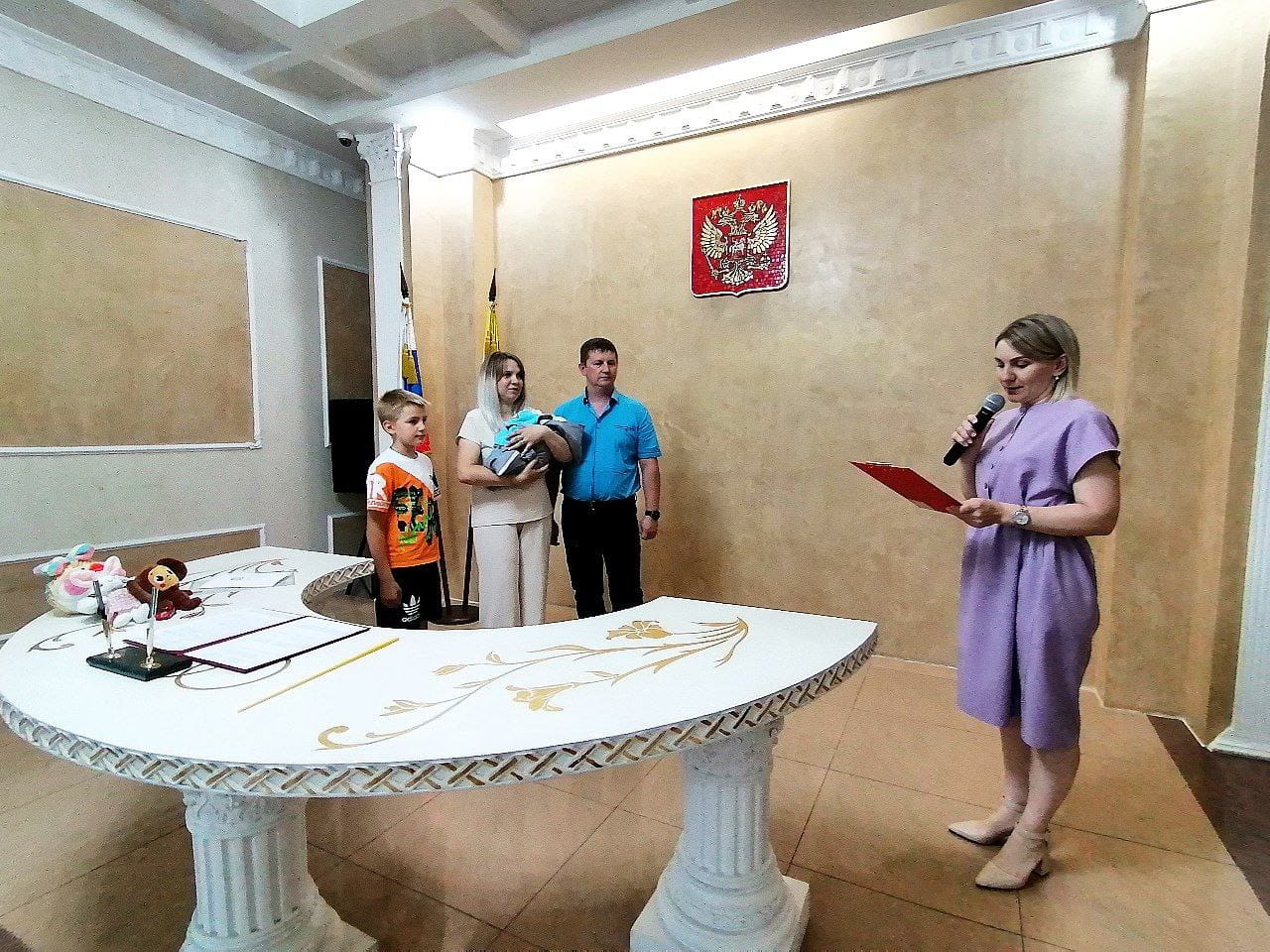 В городском отдела ЗАГСа прошла церемония имянаречения новорожденного. Сергей Петлин родился 5 июля и стал 500 -тым ребенком получившим свидетельство о рождении с начала 2023 года.