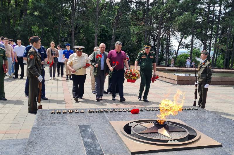 Собравшиеся возложили алые гвоздики к Вечному огню и почтили память погибших защитников Отечества минутой молчания.