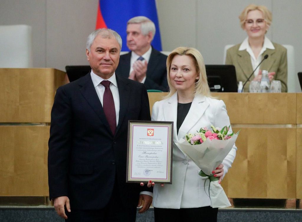 «Награждение прошло в стенах Госдумы во время пленарного заседания. Благодарность вручил председатель Государственной Думы России Вячеслав Володин», — рассказал глава города.
