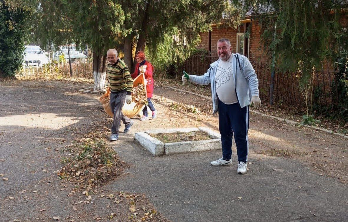 В среду на территории городской бани прошел субботник.