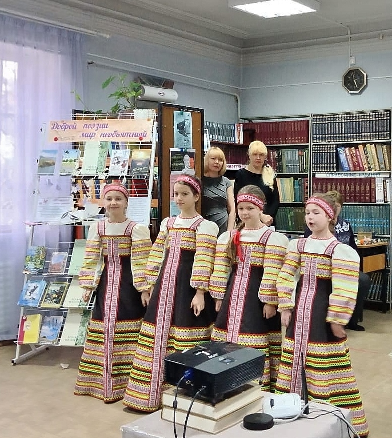 Праздничное мероприятие открыл квартет образцового ансамбля народной песни «Русский сувенир» под руководством Игнатенко Г.А. Далее ведущие представили гостям краткую историю развития поэтического искусства, а также вспомнили творчество великих русских поэтов: А. Пушкина, С. Есенина, Н. Рубцова, Б. Пастернака, А. Ахматовой. Прозвучали лирические композиции на известные произведения перечисленных авторов.