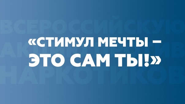 В целях реализации Указа Президента Российской Федерации от 23 ноября 2020 г. № 733 «Об утверждении Стратегии государственной антинаркотической политики Российской Федерации на период до 2030 года», Указа Президента Российской Федерации от 02.07.2021 № 400 «Об утверждении Стратегии национальной безопасности Российской Федерации», Федеральным агентством по делам молодежи совместно с МВД России, исполнительными органами субъектов Российской Федерации при поддержке Минздрава России, МИД России, Минобрнауки России, Минпросвещения России организуется проведение онлайн-акции «Стимул мечты — это сам ты» (далее — Акция), приуроченной к Международному дню борьбы со злоупотреблением наркотическими средствами и их незаконным оборотом. Акция проходит в период с 26 июня по 3 июля 2023 года.