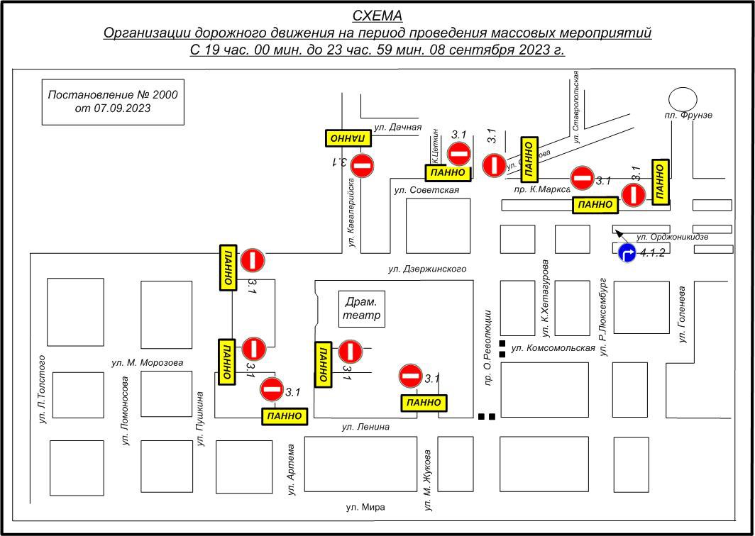 Проехать будет нельзя с 19.00 до 23.59 по улице Маршала Жукова от Ленина до Морозова; по улице Морозова от Маршала Жукова до Пушкина, по улицам Советской, Булкина, Артема от Ленина до Дзержинского, улице Кавалерийской от Дачной до Дзержинского.