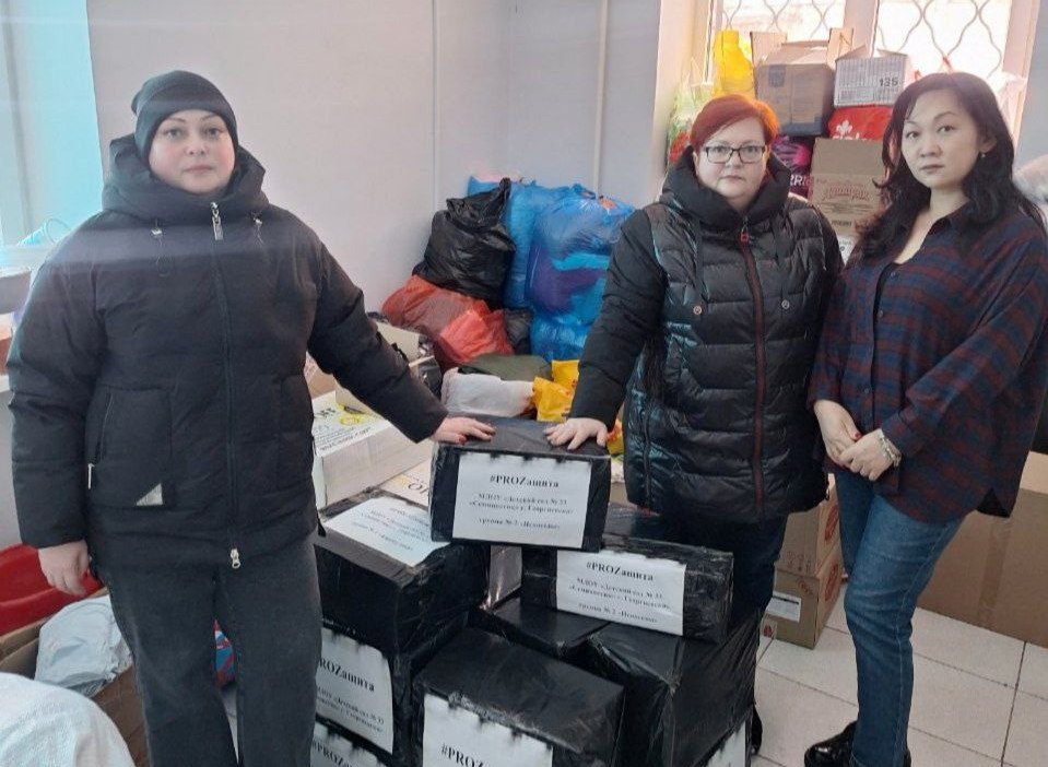 В рамках акции «PROZащита», организованной Георгиевской территориальной организацией профсоюза, в муниципальный штаб #МыВместе доставили посылки с гостинцами для бойцов СВО, собранные родителями воспитанников и коллективами детских садов №1 «Тополек» ст. Незлобной, №2 «Дюймовочка» ст. Георгиевской, а также №33 «Семицветик», №40 «Сказочная страна», №29 «Умка» и №31 «Капелька» г. Георгиевска.