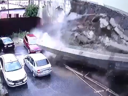 Стена обвалилась на припаркованные автомобили в Кисловодске