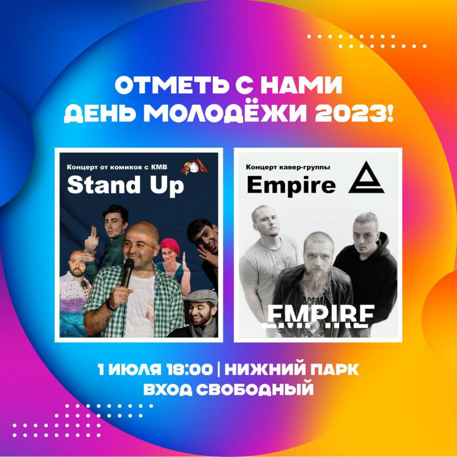 1 июля с 18:00 до 22:00 в Нижнем парке г. Зеленокумска выступит музыкальная кавер-группа «Empire» (Георгиевск) и уже полюбившиеся многим талантливые комики из сообщества «Stand Up KMV», лидером которого является участник «Открытого микрофона на ТНТ» и полуфиналист «Comedy Баттла на ТНТ» Садияр Абасов.