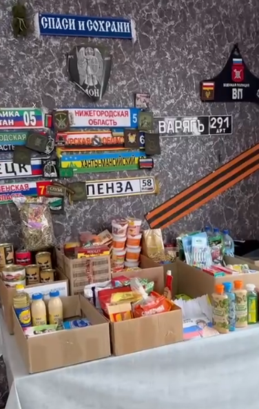 Сегодня в столовой обновлен зал приема пищи, оснащение кухни, снова здесь располагается зона со всем необходимым для бойцов. Обеденный зал украшен детскими рисунками. Также в столовой разместился стенд с военно-патриотической атрибутикой.