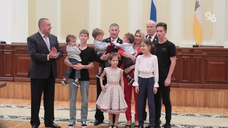 Председатель Думы Ставропольского края Николай Великдань и заместитель председателя краевого правительства Илья Дроздов вручили двум многодетным семьям - родителям шестерых и семерых детей из Шпаковского округа – Кияшко Сергею Витальевичу и Екатерине Николаевне и Струковым Андрею Николаевичу и Надежде Анатольевне за заслуги в воспитании детей и укреплении семейных традиций медали ордена «Родительская слава».