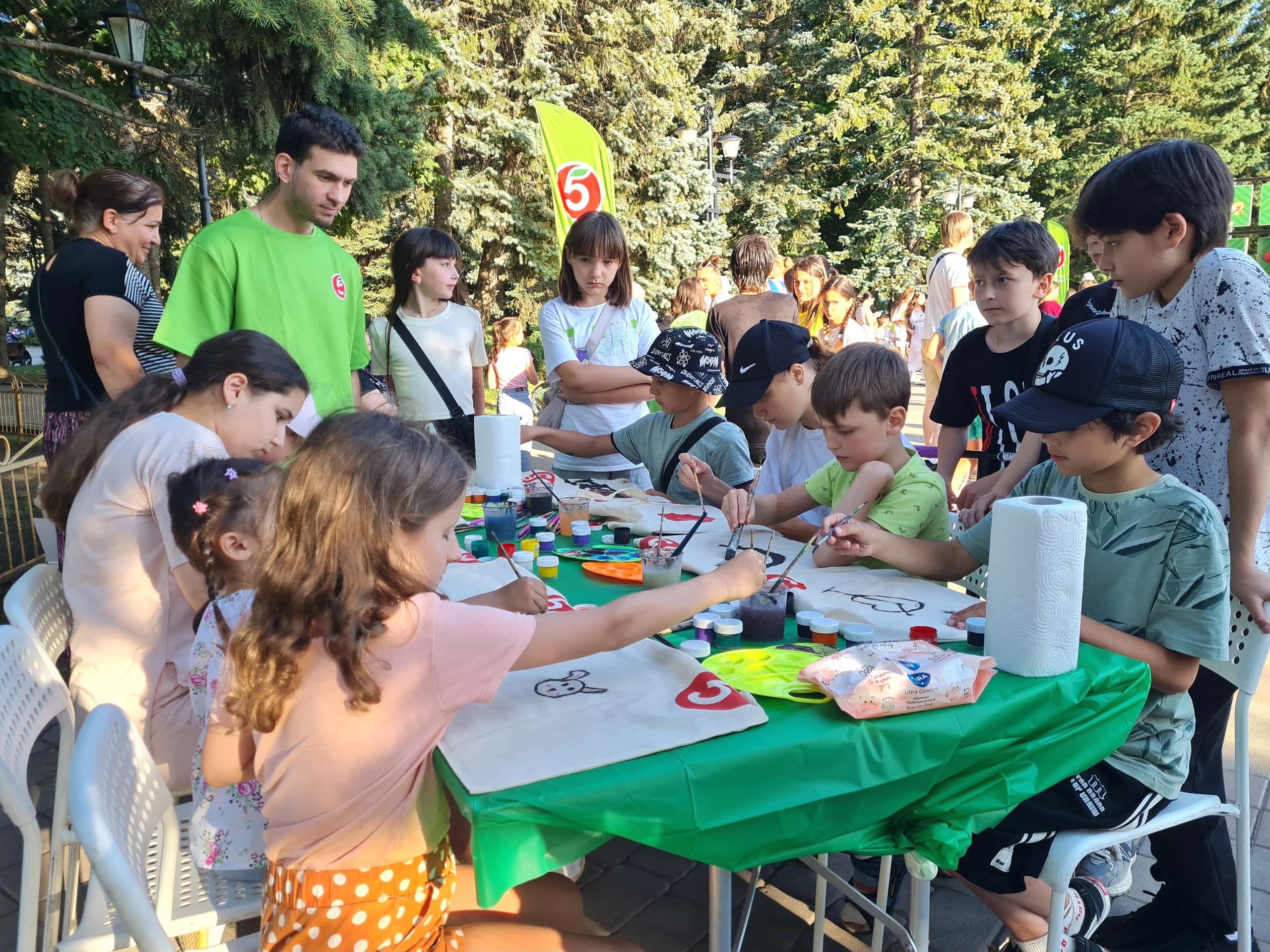 Кроме того, в рамках проекта главный организатор мероприятий – торговая сеть «Пятёрочка» обустроила на площадке брендированную фотозону и игровую зону для взрослых и детей с различными играми: большой стенд-раскраска, фотобудка и ростовые куклы.