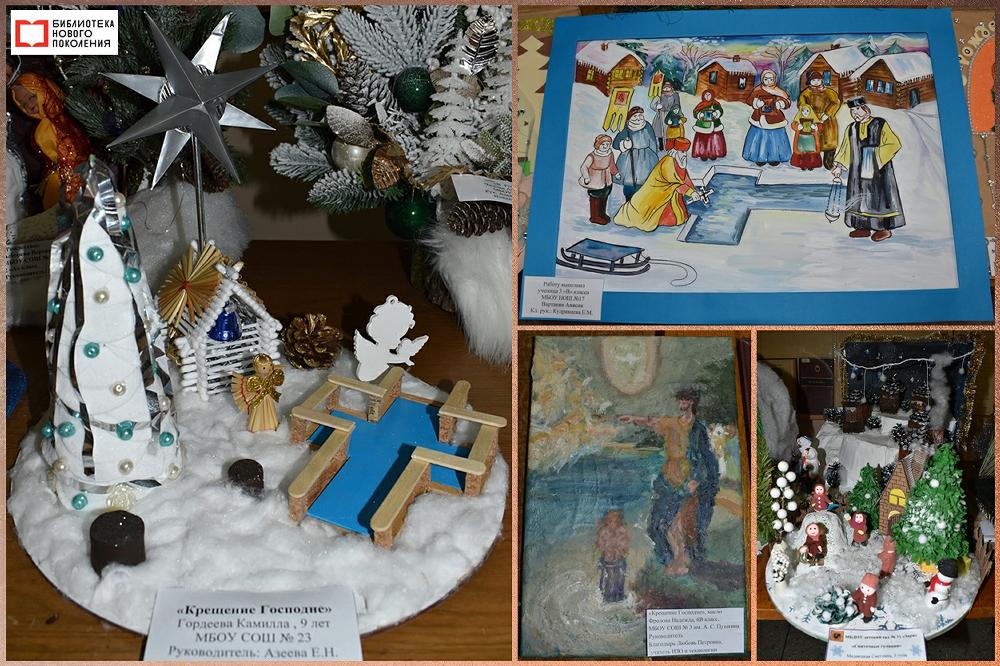 Зима не побаловала нас в этом году снегом ни к празднику Нового года, ни к Рождеству, ни даже к старому Новому году. Как что-то не желают заглянуть к нам, если верить предсказаниям метеорологов, и Крещенские морозы. А потому хотим усилить настроение приближающегося праздника Крещения чудесными работами, которые представлены на городской выставке детского декоративно-прикладного творчества «Зимние радости. Святки». Многие жители и гости города уже оценили творения юных пятигорчан, выполненные под руководством родителей, воспитателей и преподавателей. Они согревали сердце на протяжении месяца как читателям, так и сотрудникам Центральной городской библиотеки им. М. Горького, напоминая о том, какие же это всё-таки светлые и добрые праздники – Новый год, Рождество и Крещение!
