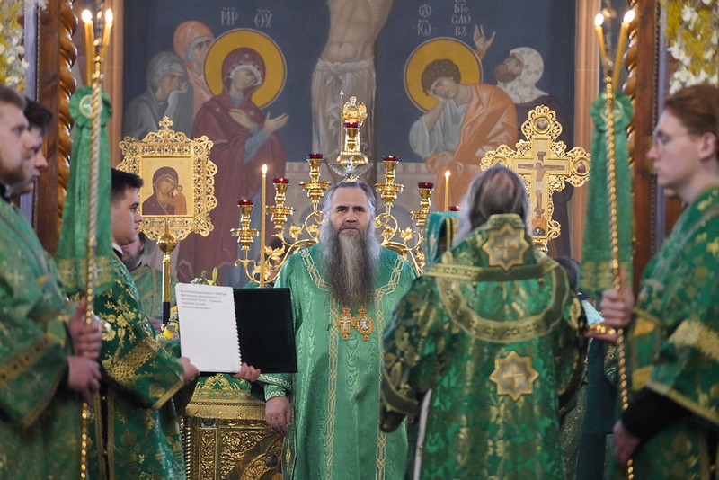Богослужение возглавил митрополит Нижегородский и Арзамасский Георгий. Ему сослужили митрополит Йошкар-Олинский и Марийский Иоанн, митрополит Вятский и Слободской Марк, митрополит Иваново-Вознесенский и Вичугский Иосиф, митрополит Саранский и Мордовский Зиновий, митрополит Ставропольский и Невинномысский Кирилл, архиепископ Витебский и Оршанский Димитрий, епископ Краснослободский и Темниковский Климент, епископ Ардатовский и Атяшевский Вениамин, епископ Канашский и Беловолжский Стефан, епископ Скопинский и Шацкий Питирим, епископ Сердобский и Спасский Митрофан, епископ Макаровский Гедеон, викарии Нижегородской епархии епископ Балахнинский Илия, епископ Дальнеконстантиновский Филарет и епископ Сормовский Иннокентий, епископ Выксунский и Павловский Варнава, епископ Лысковский и Лукояновский Силуан, а также секретарь Нижегородского епархиального управления протоиерей Сергий Матвеев и другие клирики епархий Русской Православной Церкви.