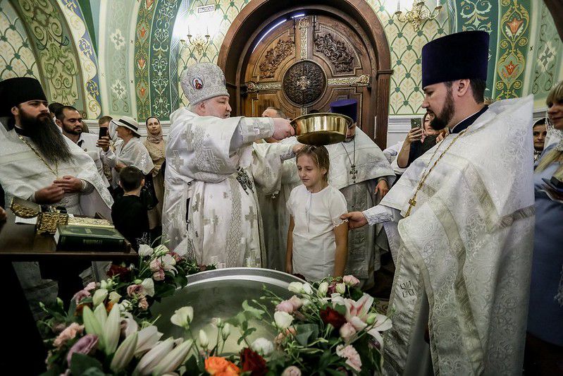 Совершение крещальной Литургии в дни празднований в честь святого князя Владимира — дань памяти крестителю Руси, при котором массовые крещения происходили в водах рек и озер. Центром богослужения является Евхаристия, при этом она соединяется с Таинством крещения новых членов Церкви.