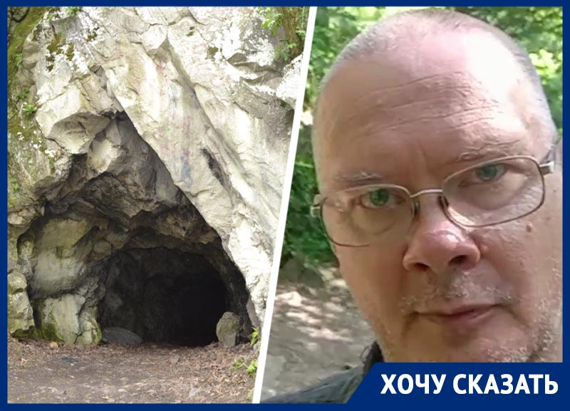 Слева: пещера вечной мерзлоты, culttourism.ru, справа: Андрей Ожаровский, фото: скриншот из Telegram-канала Экозащита КМВ