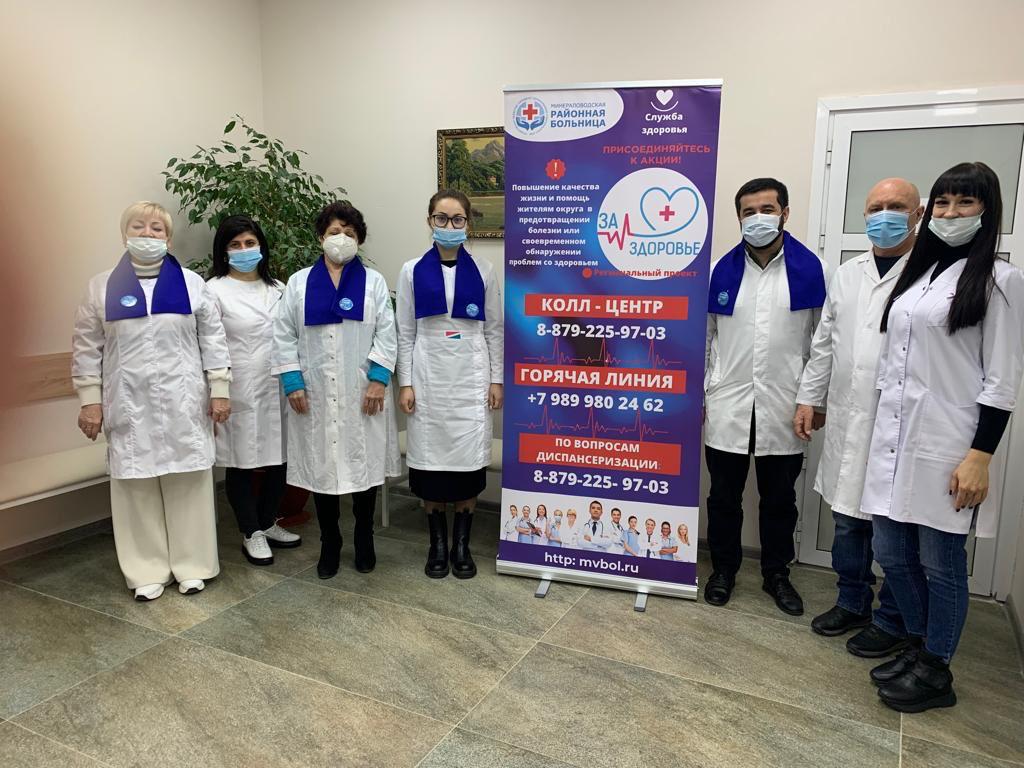 ГБУЗ СК "Минераловодская РБ" - активный участник краевого проекта "За здоровье". Медучреждение реализует целый комплекс мероприятий, направленных на сохранение и укрепление здоровья жителей Минераловодского округа, профилактику, ведение здорового образа жизни, раннее предупреждение наиболее распространенных заболеваний. Мобильные бригады специалистов Минераловодской районной больницы выезжают в отдалённые населённые пункты Ставрополья и оказывают специализированную диагностическую и профилактическую медицинскую помощь местным жителям.