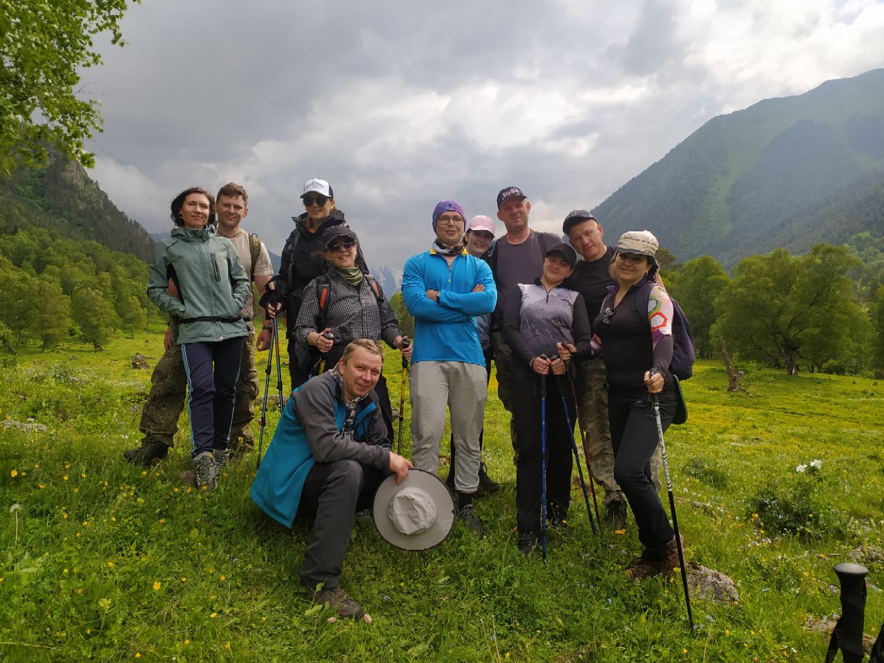 Возобновить программу корпоративного туризма организаторы решили с легких радиальных походов. Утром выходного дня на комфортабельном автобусе группа прибыла в поселок Хасаут-Греческое Карачаево-Черкессии. Далее отчаянные туристы добирались уже на транспорте повышенной проходимости до поселка Красный Карачай, где и был организован стационарный лагерь. Трехдневный выезд был насыщен душевными разговорами у костра, ароматом походной кухни, яркими эмоциями, которые всегда дарят горы.