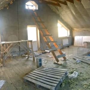• Утеплён, все коммуникации- газ, свет, вода, канализация подключены. В доме сделаны : стяжка , отопление , тёплые полы , установлен котёл Baxi (гарантия), сделана шумо- и тепло- изоляция крыши, осталось малость малярные работы.